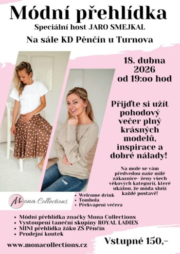 Pěnčín u Turnova, 18. dubna 2026 – Značka Mona Collections srdečně zve všechny milovníky módy, stylu a dobré nálady na jedinečnou módní přehlídku, která se uskuteční v sobotu 18. dubna 2026 v KD Pěnčín u[…]